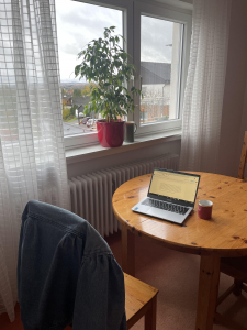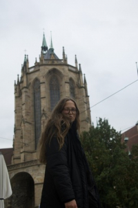 On that note, I do feel very accomplished having finally gotten a handle on public transport, specifically buses. I actively avoided them for a while, preferring to utilize the train and walk anywhere after that, but I quickly realized that not everything is conveniently close to said station, most importantly, the airport. I am proud to report, however, that after a couple of missed buses and a few anxiety-filled rides, I finally feel fairly confident about using Dublin buses. I have found that my confidence in general has risen since this triumph, especially after my most recent solo trek from my apartment to Frankfurt. Yes, ma’am, I made it all in one piece, and I only forgot an adapter. Oops! But luckily the Germans are very efficient and the local technology store outfitted me with another charging cable for only £4. I can now use my laptop in both the UK and Germany, but not in the US – peak comedy for this American writer. The picture on the left is what I would consider a peaceful moment in Germany- coffee and writing my blog while looking out the window to the village below.