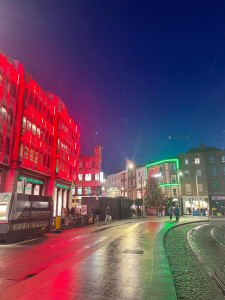 taking random solo side quests into Dublin for fun. Side note, why are second-hand stores here basically all consignment stores? What does it take for a girl to find a good thrift store that isn’t curated and generally overpriced? Just something to add to the list of things that I miss about home, I guess… Anywho, I’m just generally so proud of how much my independence and confidence have grown over this semester. I have grown to enjoy commutes and reclaim my love of looking out the window and generally just observing the world around me. I’ve spent lovely hours walking around Maynooth and Dublin with no real goal in mind, changing direction when I fancy and popping into places that pique my interest. I’ve enjoyed the time spent with my own thoughts, especially as I have become more and more comfortable with public transport. When I first got here and started using buses and trains, I would worry from the time I planned out my trip to the time that I got back to my apartment that something would go wrong. Now I’m actually able to enjoy it without constantly fretting that I missed my stop or that I got on the wrong bus. (Please enjoy the festive lights of Stephen’s Green Shopping Center, the final destination of one of my solo adventures.)